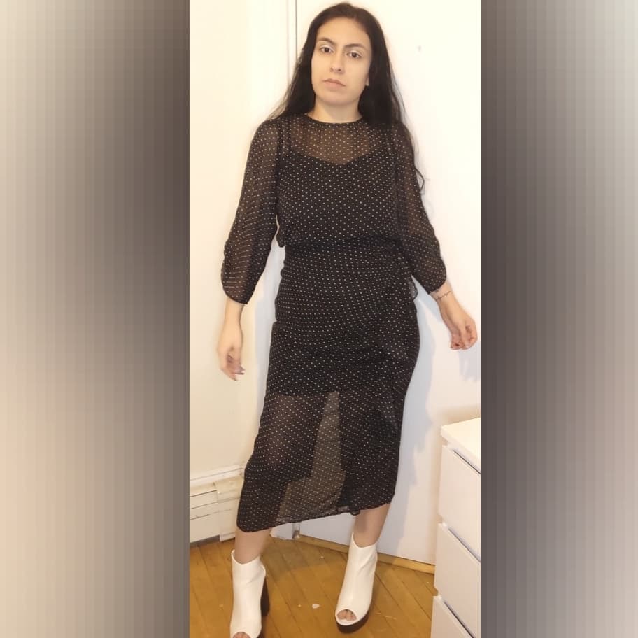 Keywords: Polka Dot Dress, Mid Length Dress, Black Dress