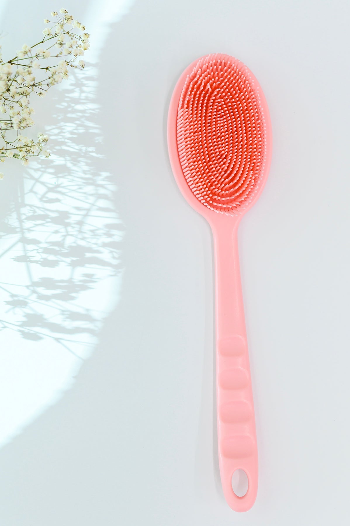 Introducing the Pretty In Pink Silicone Brush, the perfect addition to your daily shower routine! This innovative scrub brush is designed with a long handle to help you reach your back with ease, while the soft and gentle silicone bristles effectively remove dirt, oil, and dead skin cells from your skin without causing any irritation.